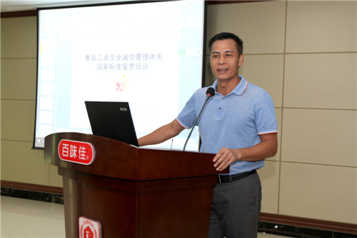 隨后,廣東省食品行業(yè)協(xié)會(huì)評(píng)估中心錢主任以食品工業(yè)企業(yè)誠(chéng)信管理體系國(guó)家標(biāo)準(zhǔn)宣貫培訓(xùn)為題進(jìn)行宣講培訓(xùn),主要從《食品工業(yè)企業(yè)誠(chéng)信管理體系》的條款釋義、體系建立、實(shí)施要求及案例分析等方面進(jìn)行深入淺出的講解,旨在推進(jìn)企業(yè)學(xué)員對(duì)誠(chéng)信管理體系的認(rèn)知以及日常工作中誠(chéng)信體系內(nèi)審的方法與技巧。