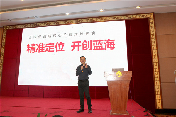 隨后,營銷顧問張老師以“精準定位,開創(chuàng)藍!睘轭},對百味佳戰(zhàn)略核心價值進行了深刻的定位解讀,他指出,在符合行業(yè)態(tài)勢以及自身優(yōu)勢的基礎上,百味佳要實現(xiàn)“高品質鮮香調味料”的戰(zhàn)略定位,就要落實核心品類打造上,實現(xiàn)以品類托品牌。同時明確新零售形勢下,百味佳將滾動運營發(fā)展,精準定位、精分市場、產(chǎn)品升級,開創(chuàng)更大更好的藍海市場。張老師的精彩分享贏得了全場熱烈掌聲。