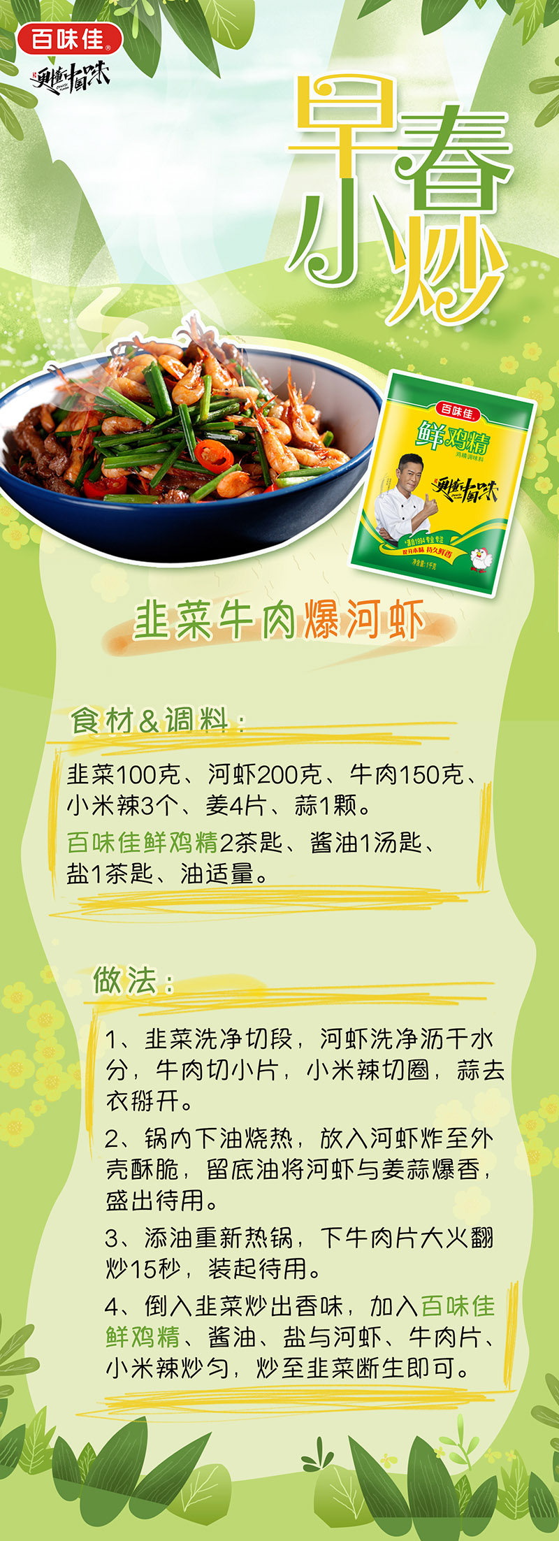 關(guān)于百味佳鮮雞精的菜式應(yīng)用——韭菜牛肉爆河蝦微博圖文 發(fā)布時間:2022-2-23 14:33:11 相關(guān)閱讀: 關(guān)于百味佳鮮雞精的菜式應(yīng)用——韭菜牛肉爆河蝦微博圖文 七夕味覺“食”刻,用百味佳醬料點(diǎn)燃浪漫餐桌!2025/09/03 秋日貼膘季|用酸甜橙香與醇厚醬香,解鎖初秋味覺新體驗!2025/09/03 新品上市 百味佳焙煎芝麻口味沙拉汁,為輕食簡餐添好味!2025/09/03 情暖八一 百味佳攜手共赴一場老兵之約,以公益之心傳承紅色軍魂2025/09/03 重磅官宣,佳哥表情包全新上線啦,快來一起聊天吧!2025/09/03